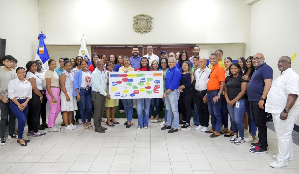 Como parte del componente simbólico de la actividad, los colaboradores vistieron colores representativos de los valores institucionales del INPOSDOM: rojo para la eficacia, morado para el compromiso, amarillo para la integridad y la discreción, verde para la vocación de servicio y blanco para la transparencia.