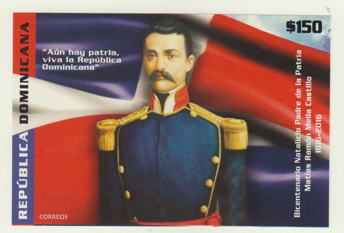 Matías Ramón Mella, estratega político de nuestra independencia, nació el 25 de febrero de 1816 y a pesar de que no fue de los fundadores de la Sociedad Secreta La Trinitaria, en poco tiempo se convirtió en uno de los adeptos más eficaces de la causa independentista, lo que le mereció la plena confianza de Juan Pablo Duarte. La noche del 27 de febrero de 1844, con el disparo al aire, comprometió con la causa a los indecisos, iniciándose así el heroico movimiento separatista, dirigiendo a partir e ese entonces, numerosas acciones en pro de la Patria. Redacta y firma junto a Sánchez, la declaración de independencia, dirige ejércitos y la logística política, luego de la independencia. Tiene además el reconocimiento de ser prócer dos veces, en la Independencia y en la Restauración. Fallece el 4 de junio de 1864, envuelto en la bandera nacional.