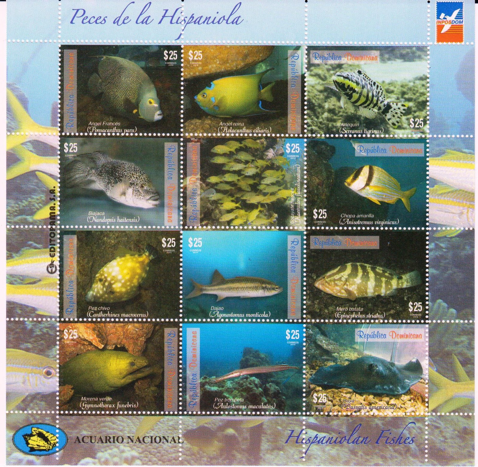 En una bella ceremonia celebrada en las instalaciones del Mariposario del Jardín Botánico el 20 de este mes de noviembre y conjuntamente con el Museo de Historia Natural y el Acuario Nacional, el Instituto Postal Dominicano siguiendo con su tradición anual de emitir sellos de la fauna de la isla, puso en circulación una nueva serie de sellos en esta ocasión con dos temáticas diferentes, Peces y Mariposas.