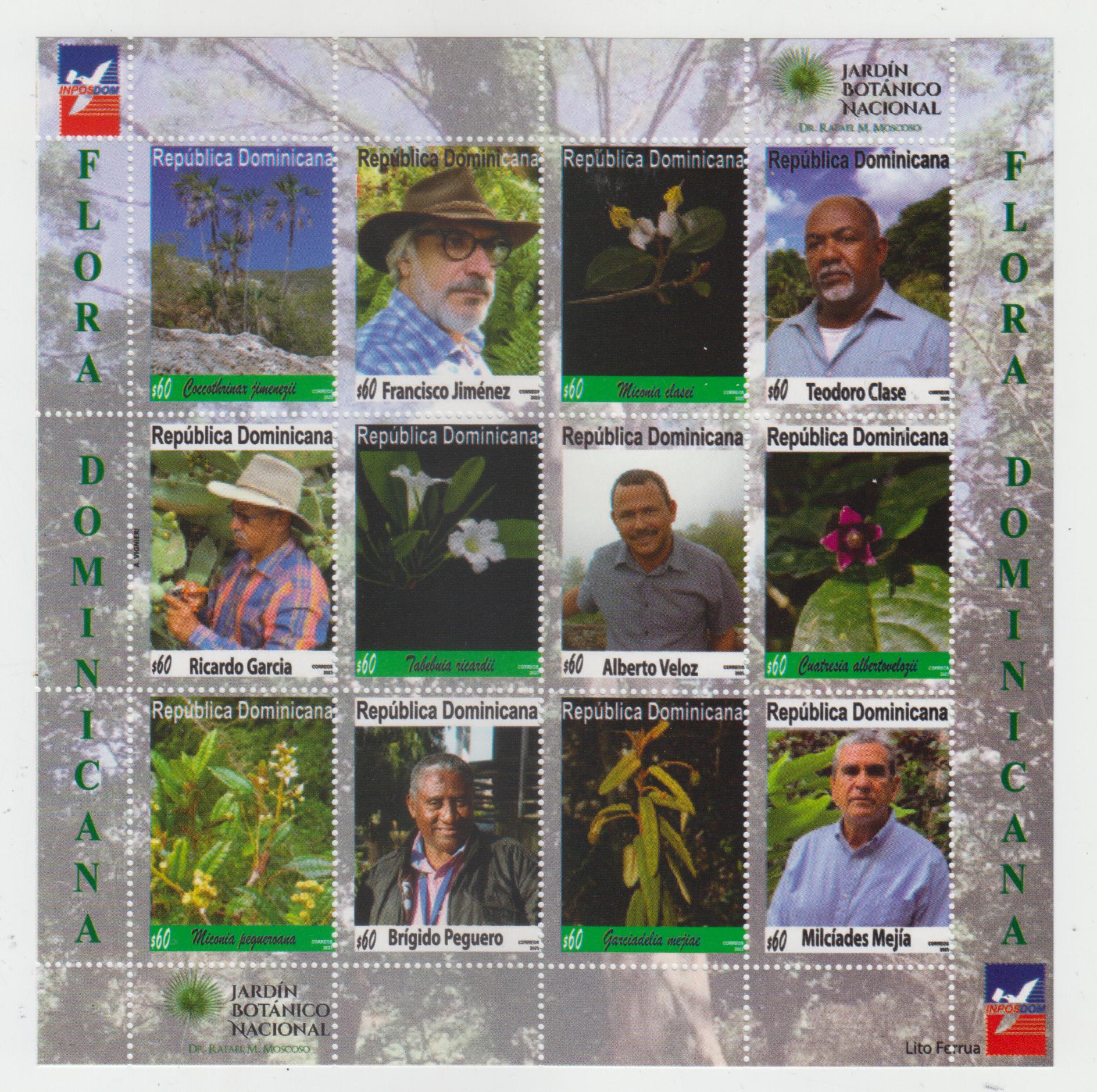El Inposdom junto al Jardín Botánico Nacional pone en circulación una nueva edición del seriado temático Flora Dominicana ,presentando en esta oportunidad, 6 botánicos y 6 especies nombradas en honor a los mismos. Los científicos honrados son : Ricardo García, Francisco Jiménez, Milciades Mejía , Alberto Veloz, Brígido Peguero y Teodoro Clase.