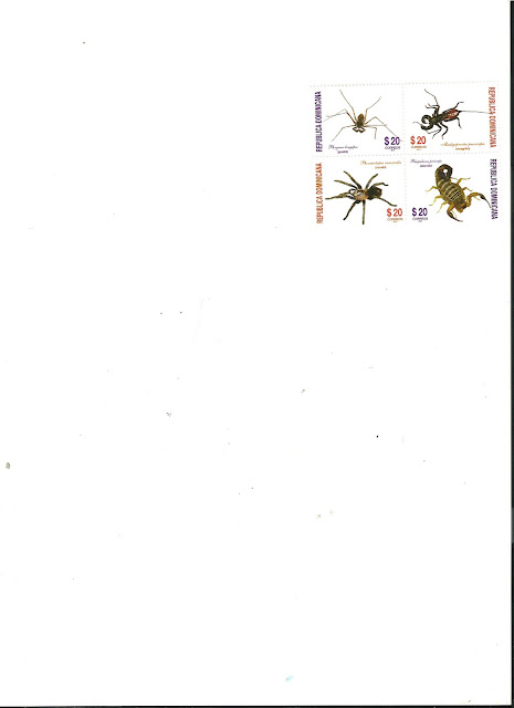 Nueva vez, el Instituto Postal Dominicano y el Museo de Historia Natural asisten de manera conjunta a la presentación de un nuevo seriado sobre la fauna de la isla . En esta ocasión, se ha puesto en circulación un bloque de 4 especies de arácnidos, conocidos popularmente como cacata, vinagrillo,guabá y alacrán.
