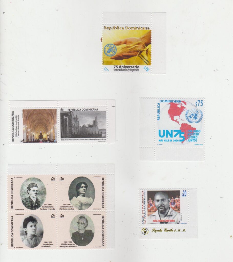 Estas emisiones no dejan de ser relevantes a pesar de esta situación. En primer lugar contamos con las emisiones conmemorativas al 75 Aniversario de Fundación de las Naciones Unidas y al 75 Aniversario de de la FAO, ambas con sellos de valor facial igual a RD 75.00 , amparadas bajo el decreto 628-20 y una tirada de 15,000 ejemplares cada una.