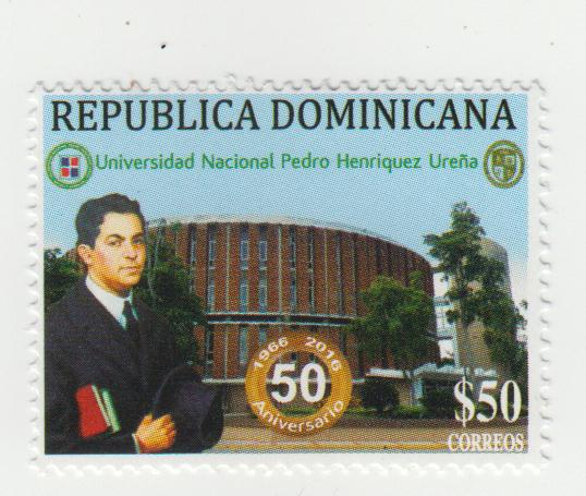 Como un testimonio histórico en el día de hoy 20 de abril , el Instituto Postal Dominicano, en la persona de su Director General, Dr. Modesto Guzmán junto al Rector Magnífico Arq. Miguel Fiallo, en representación de la Universidad Nacional Pedro Henriquez Ureña y representantes de la Fundación Universitaria Dominicana, organización fundadora de la misma, pusieron en circulación una hermosa estampilla postal para celebrar el arribo al 50 Aniversario de su fundación.