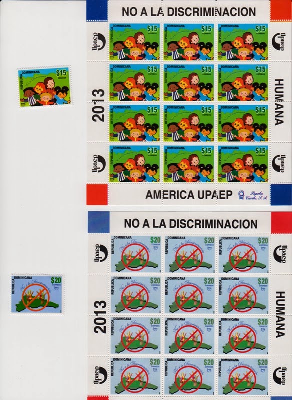La serie emitida por la República Dominicana es particularmente interesante ya que cuenta con dos sellos con valor facial de RD $15.00 y $20.00 que además se presentarse de forma independiente, aparecen en hojas de 12 sellos cada una.