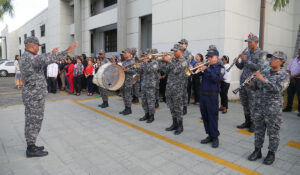 La ceremonia incluyó el izamiento de la Bandera Nacional y la entonación del Himno Nacional, interpretado por la Banda de Música de la Policía Nacional, en un ambiente de respeto y fervor patriótico.