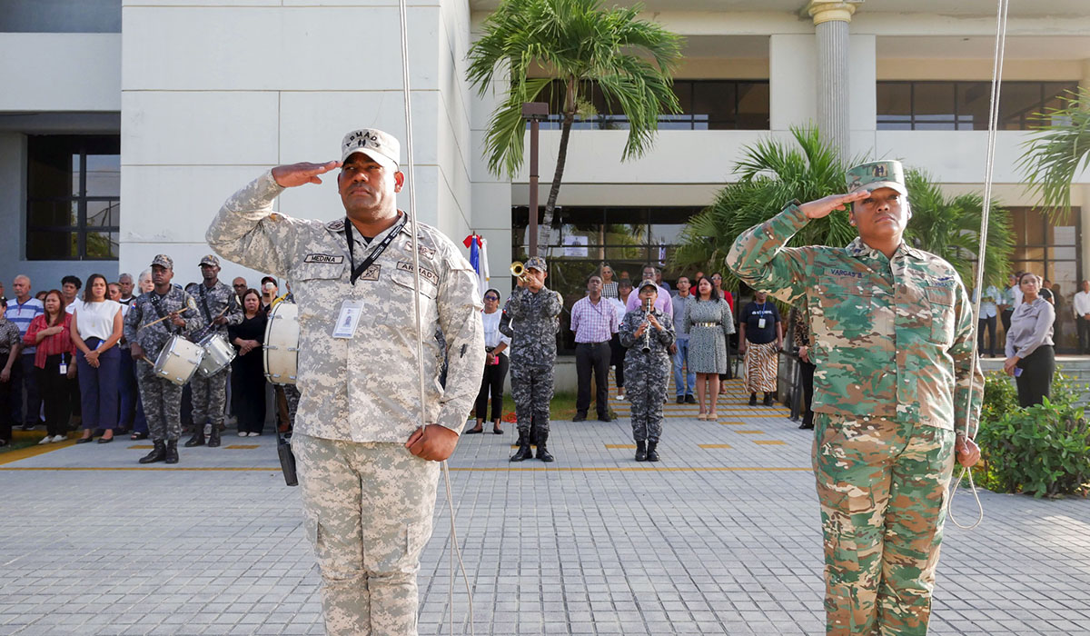 Santo Domingo, R.D. — Con el propósito de rendir tributo a la Patria y destacar los valores que sustentan su identidad institucional, el Instituto Postal Dominicano (INPOSDOM) dio inicio a las actividades conmemorativas por su 62.º aniversario de fundación, con un acto solemne en honor a los símbolos patrios celebrado en la explanada de su sede central.