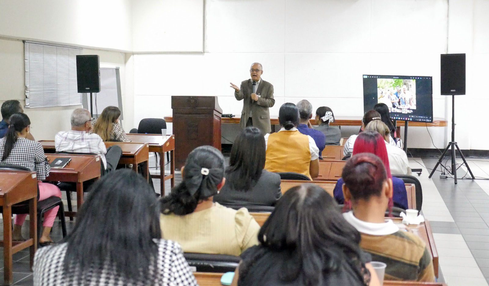 En representación de la Unidad de Salud Mental, Elaine Taveras, responsable de la actividad, presentó al invitado especial, el destacado doctor Joaquín Disla, profesional de la salud mental y terapeuta familiar, quien lideró la charla central abordando el impacto de la crianza en la salud emocional de los hijos, así como la importancia de una relación afectiva basada en el respeto mutuo y la comunicación efectiva.